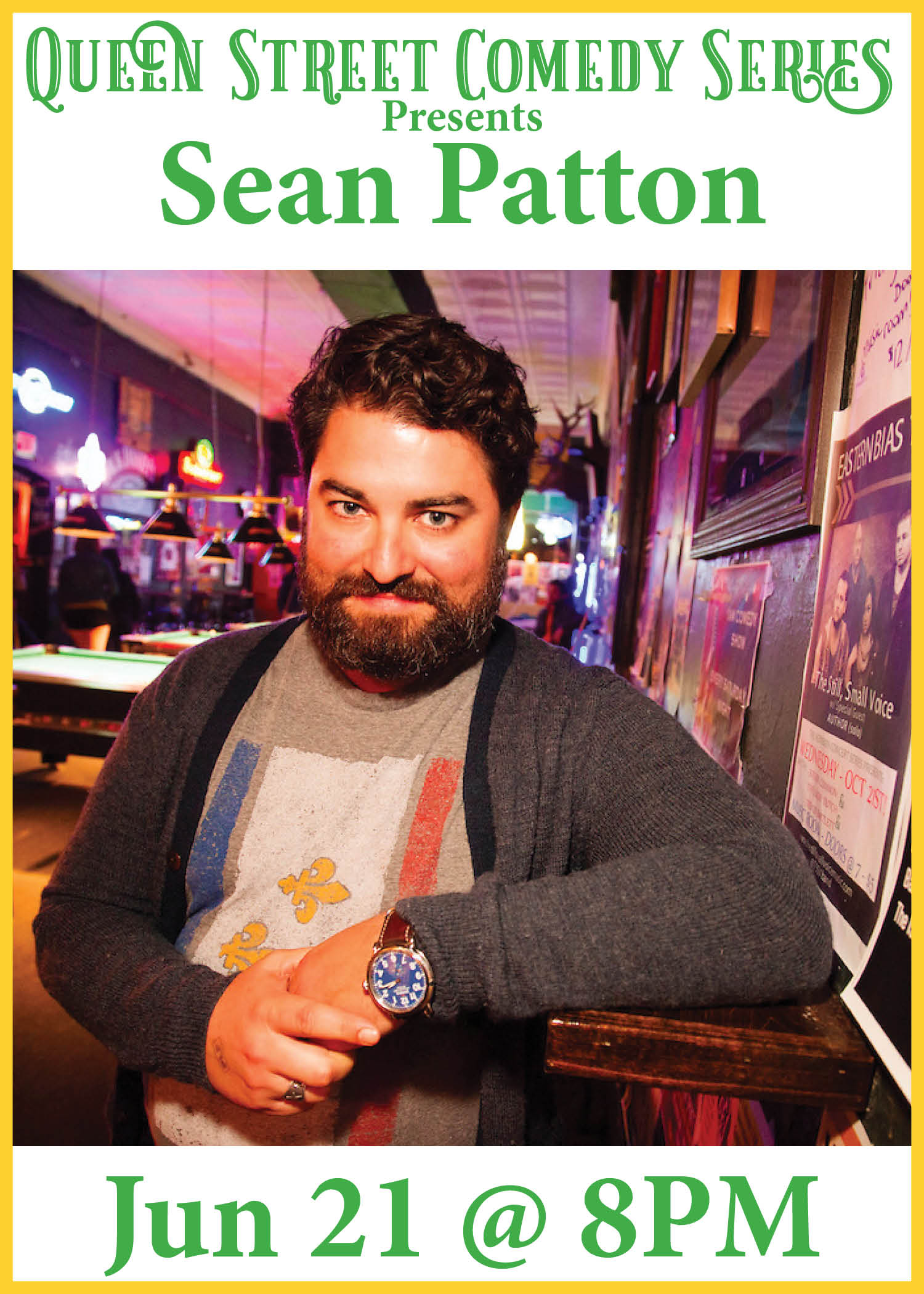 Join us on June 21 as the Queen Street Comedy Series presents renowned comedian Sean Patton to the stage with opening act by Charleston's very own Bill Davis!