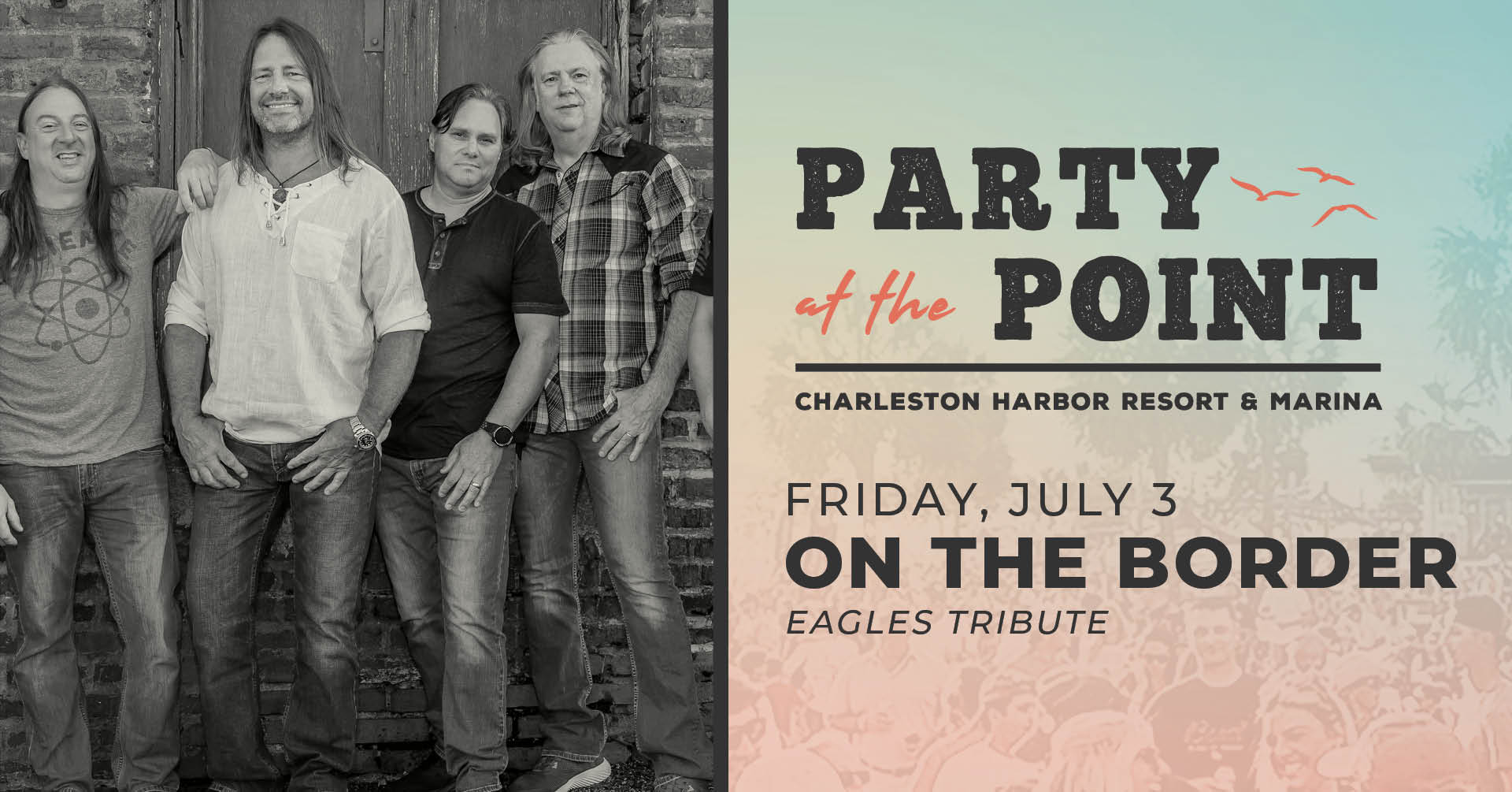 On the Border pulls it off like no other Eagles tribute can. These guys emulate the true sound of the Eagles music. Note for note musically, along with 5 part harmonies, these guys nail it on all the hits. Having played all over the U.S selling out venues and wowing crowds of all ages, you can't miss this band when they come to Charleston!