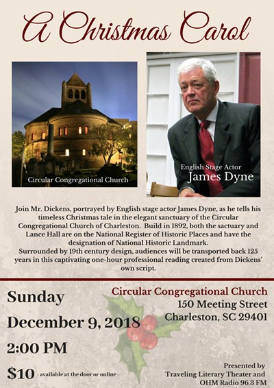 This enchanting one hour reading of Dickens' own hand edited version of A Christmas Carol has delighted audiences on the east coast for over a decade. All the beloved characters come to life as three professional actors read the little ghost story. Since 2005, English stage actor James Dyne, has read this Christmas story over 220 performances to packed houses. The Circular Congregational Church hosts this 3 person, one hour reading on Sunday December 9, 2018 @ 8pm. Tickets start at $10 online and $15 at the door.